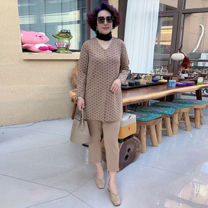 百搭V领中长款衬衫+休闲裤两件套
